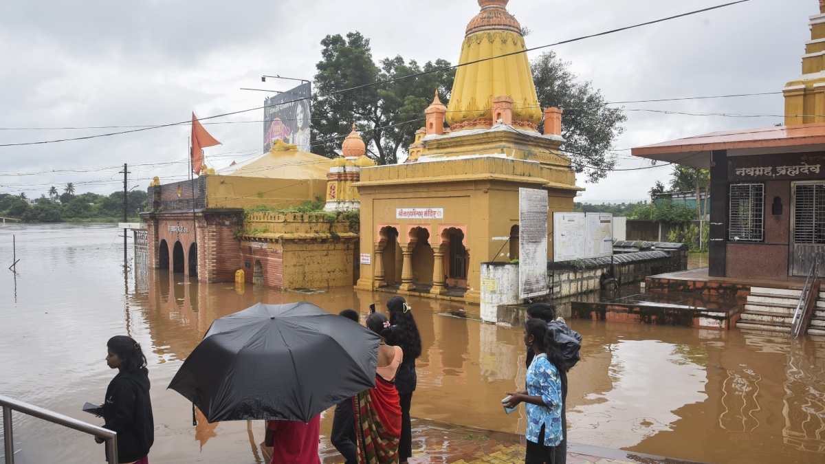 महाराष्ट्र के कराड में मंदिर पानी में डूबा
