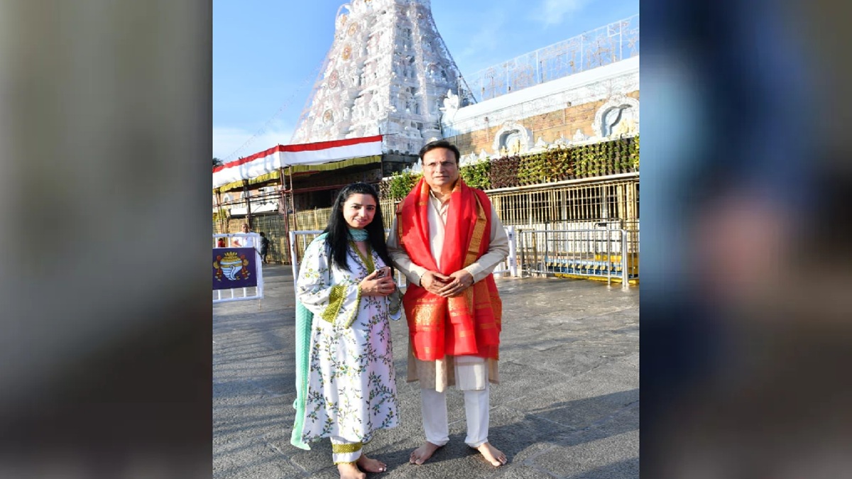 इंडिया टीवी के चेयरमैन रजत शर्मा और मैनेजिंग डायरेक्टर रितु धवन ने तिरुपति बालाजी मंदिर में की पूजा-अर्चना