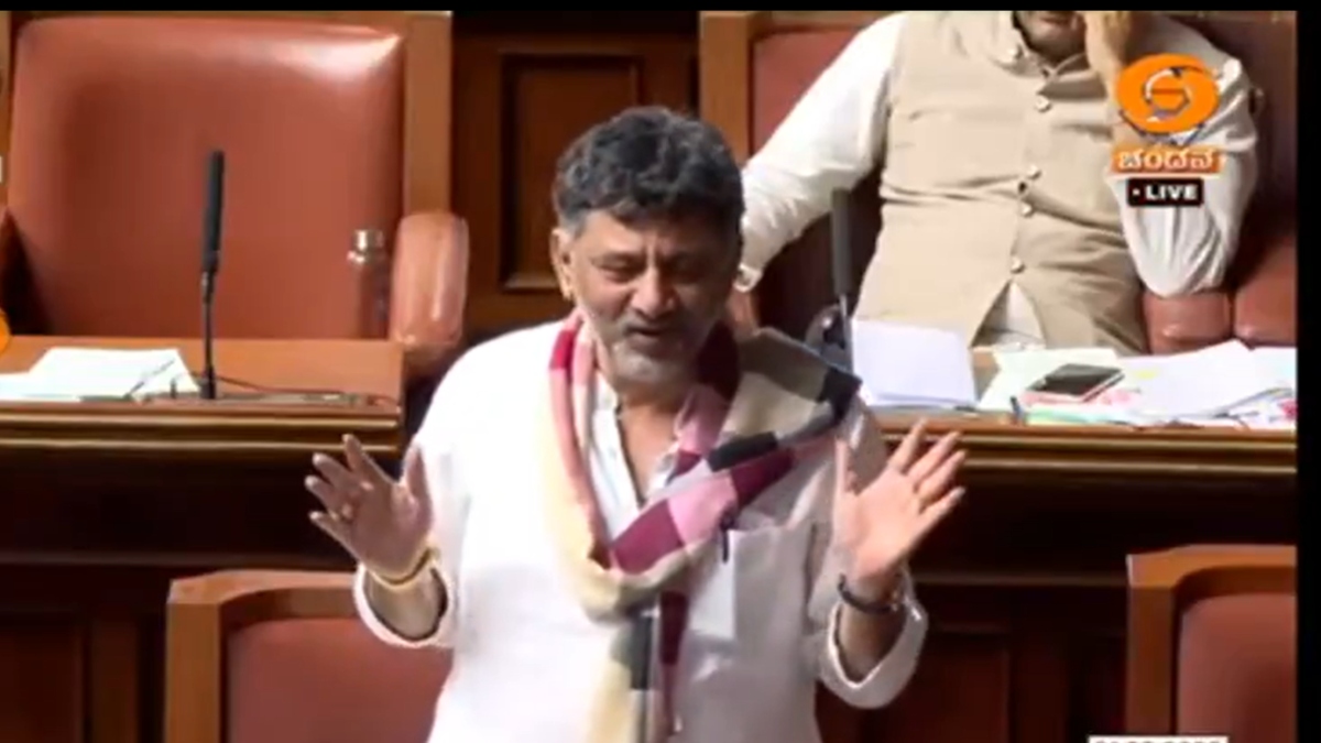 उपमुख्यमंत्री डीके शिवकुमार ने यह भी कहा कि वह गृह मंत्री जी परमेश्वर के साथ पले-बढ़े हैं। इस पर, विपक्ष के नेता भाजपा के आर अशोक ने शिवकुमार को याद दिलाया कि उन्होंने एक बार कहा था कि वह ‘आरएसएस की चड्डी’ पहनते हैं। इसी दौरान शिवकुमार ने मुस्कराते हुए ‘नमस्ते सदा वत्सले मातृभूमे’ गाना शुरू कर दिया। विपक्ष ने इस पर मेजें थपथपाईं, लेकिन कांग्रेस खेमे में सन्नाटा छा गया।