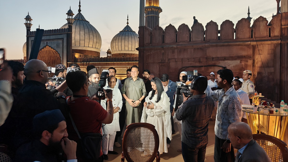 नई दिल्ली: राजधानी दिल्ली स्थित जामा मस्जिद के नायब शाही इमाम सैयद शबन बुखारी की ओर से रमजान इफ्तार का आयोजन किया गया। इस इफ्तार पार्टी में इंडिया टीवी के चेयरमैन और एडिटर इन चीफ रजत शर्मा भी शामिल हुए। उनके साथ इंडिया टीवी की मैनेजिंग डायरेक्टर रितु धवन भी मौजूद थीं। इस रमजान इफ्तार में राजनीति और मीडिया जगत की हस्तियों के अलावा कई मुल्कों के राजदूत और हाई कमिश्नर्स भी शामिल हुए।