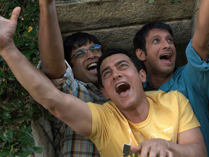 फिल्म में आमिर खान ने रैंचो, आर. माधवन ने फरहान और शरमन जोशी ने राजू का किरदार निभाया था।
