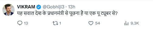 वहीं एक ने लिखा है, ये सवाल देश के प्रधानमंत्री से पूछना है या एक यूट्यूबर से।