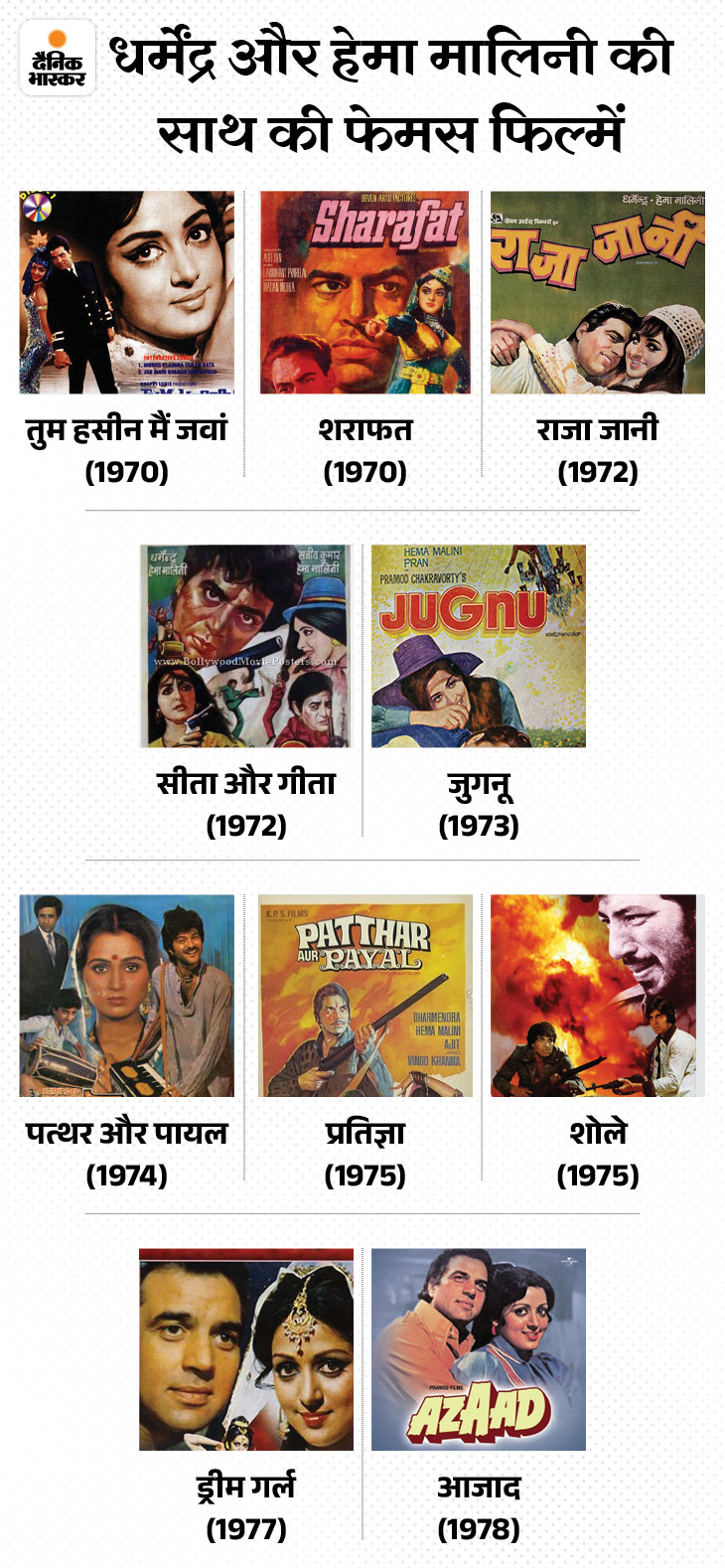 धर्मेंद्र और हेमा मालिनी ने एक साथ 30 से अधिक फिल्मों में काम किया है।