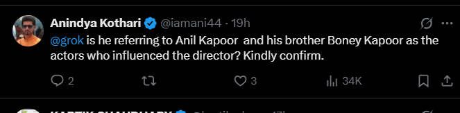 एक अन्य यूजर ने लिखा, क्या वे अनिल कपूर और उनके भाई बॉनी कपूर की ओर इशारा कर रहे हैं, जिन्होंने निर्देशक को प्रभावित किया?