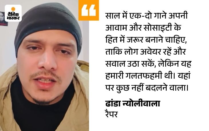 2021 के बाद मुद्दों से दूरी की वजह उन्होंने कहा कि 2021 में इन्हीं सोसाइटी के इश्यूज को लेकर उन्होंने आखिरी गाना अप टू यू किया था। अब साल 2025 आ चुका है और 4 साल गुजर चुके हैं। इसलिए इन मुद्दों को मैं नहीं छेड़ता हूं, क्योंकि हम अपनी बात रखेंगे तो समाज उसे एक्सेप्ट नहीं कर पाएगा। चाहते यह थे कि म्यूजिक के हवाले से अपने इर्द-गिर्द की सोसाइटी में जो अच्छे-बुरे काम हो रहे हैं, उन्हें यूथ और नई नस्ल के सामने रखा जाए और फिर कहीं जाकर कार्ल मार्क्स और कृष्णमूर्ति तक बात पहुंचे, लेकिन यहां जो हालात हैं, यहां कुछ भी बदलने वाला नहीं है।
