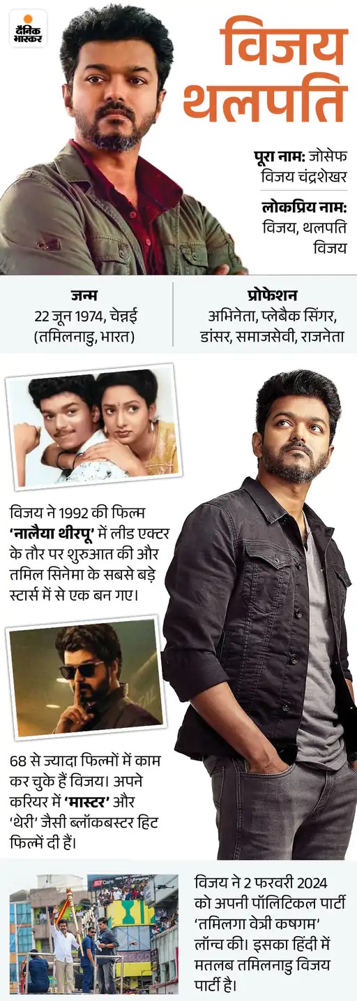 2 फरवरी को पार्टी लॉन्च की थी एक्टर विजय ने 2 फरवरी को अपनी पार्टी लॉन्च की थी। इसके बाद 22 अगस्त को उन्होंने पार्टी का फ्लैग और सिम्बल लॉन्च किया था। चुनाव आयोग ने 8 सितम्बर को उनकी पार्टी को राजनीतिक पार्टी के रूप में आधिकारिक मान्यता दी थी।