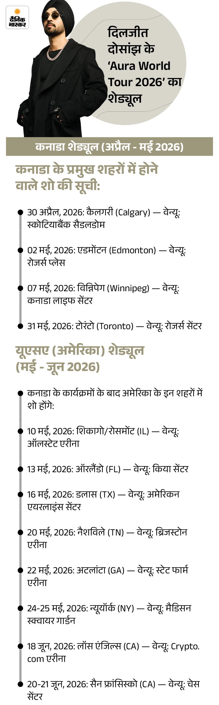 पंजाबी और बॉलीवुड सिंगर दिलजीत दोसांझ के कनाडा में हुए लाइव कॉन्सर्ट में हंगामा खड़ा हो गया। वैंकूवर में हुए ‘औरा-2026’ लाइव कॉन्सर्ट में खालिस्तान समर्थक पहुंच गए और झंडे दिखाकर नारेबाजी करने लगे।