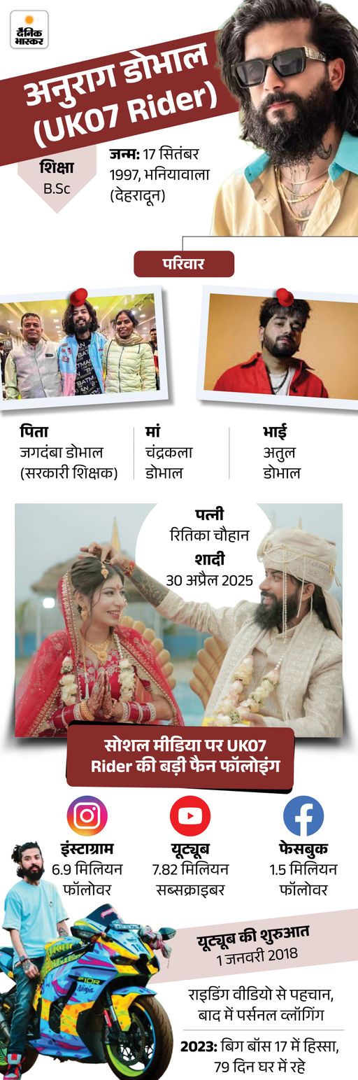 हाल ही में अनुराग डोभाल (UK07) ने यूट्यूबर पर दो घंटे का एक वीडियो जारी किया, जिसमें उन्होंने बताया कि इंटरकास्ट मैरिज के चलते उनके परिवार वाले उन्हें प्रताड़ित कर रहे हैं। उनकी पत्नी भी छोड़कर चली गई है। रोते हुए वो बार-बार आत्महत्या की बातें कर रहे थे।