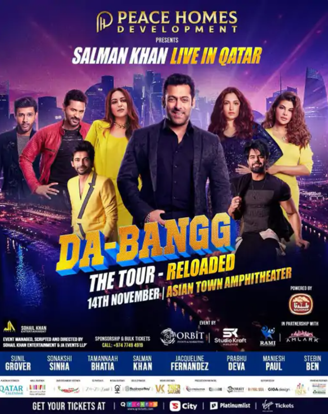 बता दें कि सलमान खान का ‘दबंग: द टूर रीलोडेड’ 14 नवंबर से शुरू हुआ है। इसमें इसका पहला पड़ाव दोहा था। इस टूर में प्रभु देवा, एक्टर-कॉमेडियन सुनील ग्रोवर, एक्ट्रेस तमन्ना भाटिया, जैकलीन फर्नांडीस, सोनाक्षी सिन्हा, सिंगर स्टेबिन बेन और मनीष पॉल जैसे कलाकार शामिल हैं। शो को सोहेल खान एंटरटेनमेंट और जेए इवेंट्स ने तैयार किया है।