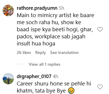 एक यूजर ने लिखा – मैं तो मिमिक्री आर्टिस्ट के बारे में सोच रहा हूं, शो के बाद इस पर क्या बीती होगी। घर, पड़ोस, वर्कप्लेस, हर जगह उसकी बेइज्जती हुई होगी।