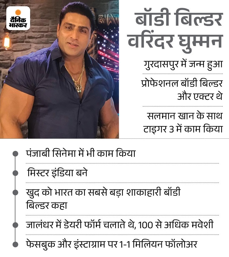 - 6.2 फिट हाइट, बॉडी बिल्डिंग कंपटीशन लड़े: वरिंदर सिंह घुम्मण प्रोफेशनल बॉडी बिल्डर थे। उनकी हाइट 6.2 फिट थी। उनका जालंधर में अपना एक डायरी फॉर्म भी है जिसमें 100 से ज्यादा पशु हैं। बचपन से घुम्मण बॉडी बिल्डिंग कंपटीशन में हिस्सा ले रहे थे।