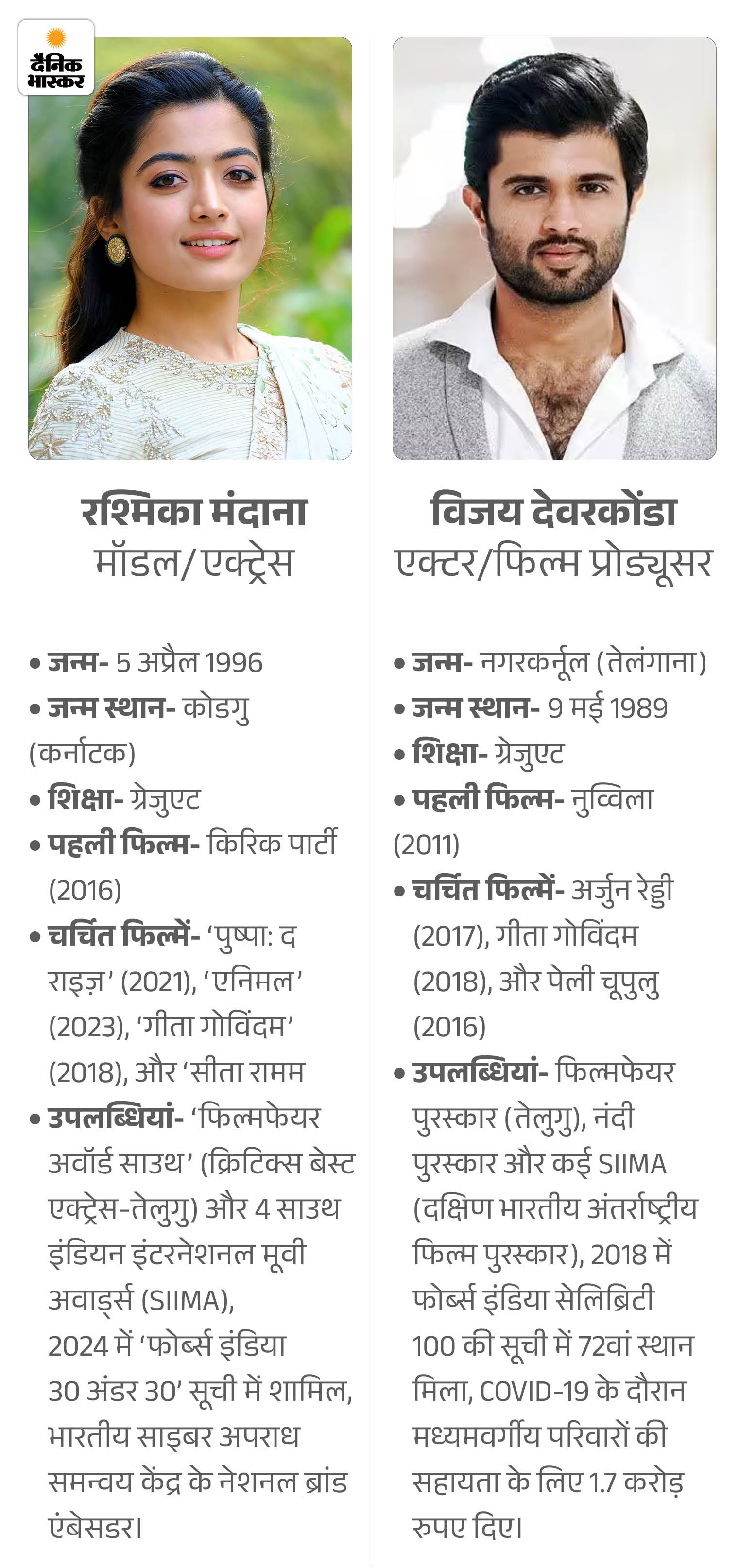 साउथ इंडियन फिल्मों के एक्टर विजय देवरकोंडा और रश्मिका मंदाना उदयपुर में 26 फरवरी को शादी करने जा रहे हैं।