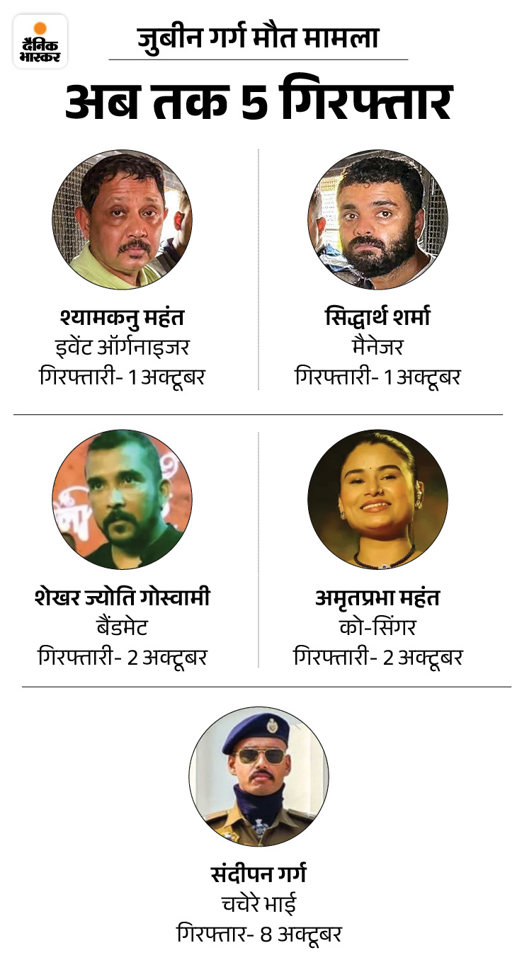 4 अक्टूबर- गिरफ्तार हुए साथी का दावा, जहर दिया गया था सिंगर जुबीन गर्ग की मौत के मामले में गिरफ्तार उनके बैंडमेट (साथी सिंगर) शेखर ज्योति गोस्वामी ने 4 अक्टूबर को दावा किया था कि सिंगर के मैनेजर सिद्धार्थ शर्मा और इवेंट ऑर्गनाइजर श्यामकनु महंत ने उन्हें जहर दिया था। दोनों ने हत्या को हादसा दिखाने की साजिश रची थी।